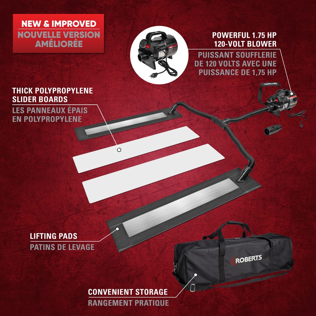 ROBERTS Dual Air Glider with Case – Model 10-485 provides a powerful lifting solution that allows one person to move heavy items up to 800 lbs with ease. Using hovercraft-style airflow, this tool glides furniture, appliances, and equipment smoothly across floors without damage.