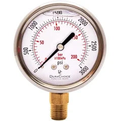 DuraChoice Oil Filled Pressue Gauge 2-1/2" Dial, 1/4" NPT, 0-3000