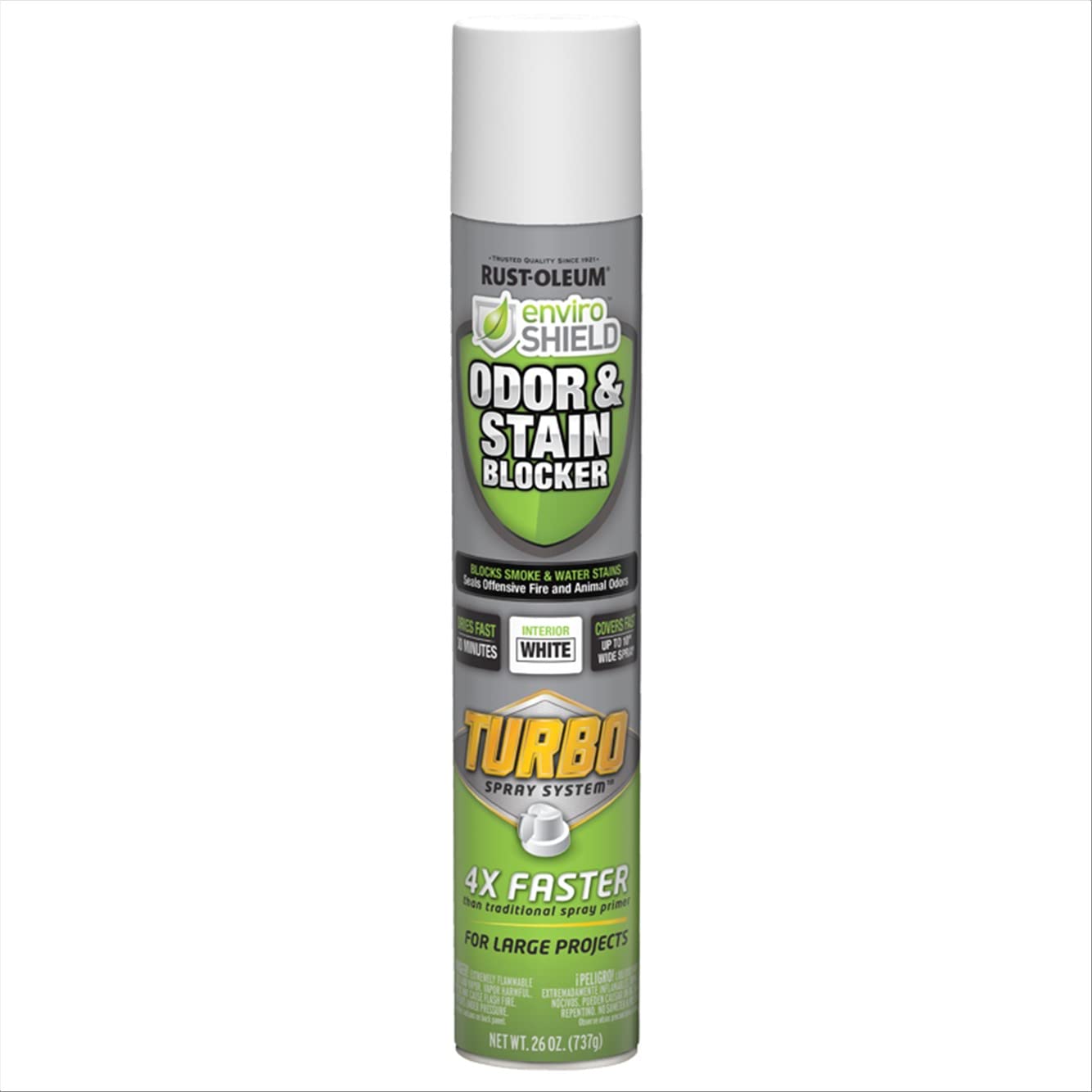 The Rust-Oleum EnviroShield Odor & Stain Blocker Turbo White is a professional aerosol primer designed to seal in persistent stains and neutralize odors. Featuring Turbo Spray System™ technology, this can delivers 4x greater output, covering large areas fast—perfect for restoration, renovation, and repaint projects.
