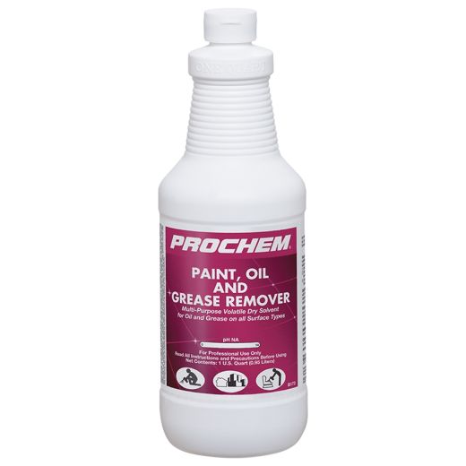 ProChem Paint, Oil & Grease Remover is a professional-grade cleaner engineered to tackle stubborn, oil-based contamination on both soft and hard surfaces. From dried paint to automotive grease and tar, this fast-acting formula penetrates deep to dissolve residues and lift stains—making it a must-have for restoration pros and DIY users alike.