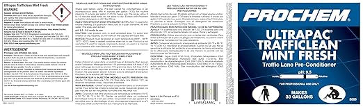 Prochem Ultrapac Trafficlean is a professional-strength pre-spray formulated to break down heavy grease, ground-in soil, and traffic lane buildup. Designed for use in both residential and commercial carpet care, its deep-penetrating chemistry and refreshing mint scent make it a favorite among industry pros.