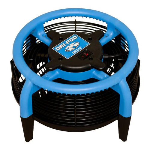 The [Rental] Dri-Pod Air Mover delivers focused downdraft airflow to dry floors quickly and evenly. Lightweight, compact, and rugged, it’s designed for restoration jobs, carpet cleaning, janitorial work, and everyday spill cleanup in tight spaces. Speed dries carpet, this is the most compact downdraft fan ever made!