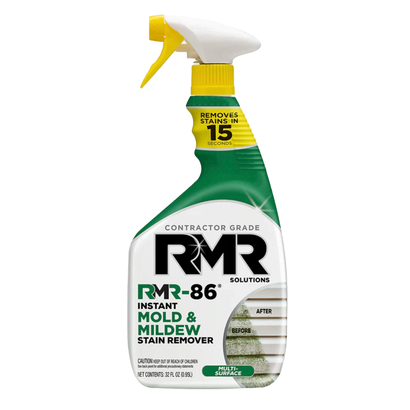 RMR-86 is a powerful, ready-to-use stain remover trusted by restoration professionals to instantly eliminate tough mold and mildew stains. Designed for use on hard surfaces indoors and out, this fast-acting formula requires no scrubbing—just spray and watch stains disappear in seconds.